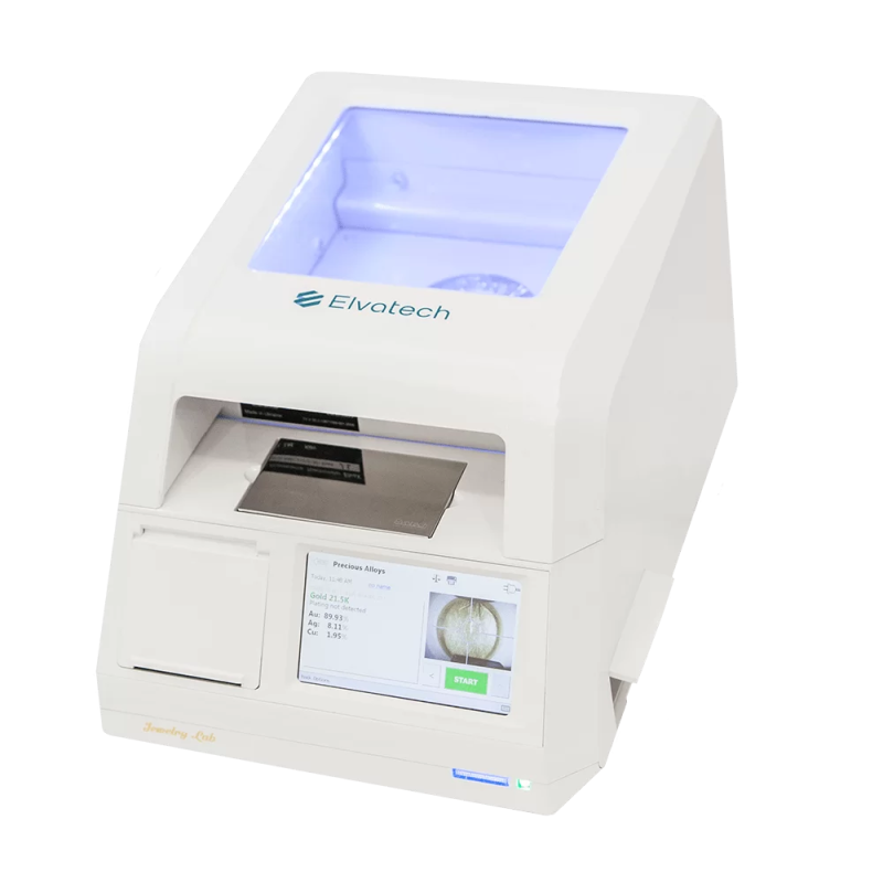 ElvaX Jewelry Lab verfügt über integrierte hochpräzise Waage und einen eingebauten Drucker, mit dem der Benutzer Analysenzertifikate mit Angaben zur chemischen Zusammensetzung, zum Gewicht und sogar zum Preis ausdrucken kann. Der eingebaute Lithium-Ionen-Akkumulator ermöglicht Analysen unter Feldbedingungen.